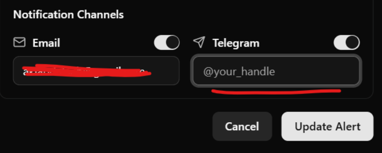 Telegram – for faster, real-time notifications, If you prefer Telegram, simply provide your handle or username (e.g., @Satoshi).