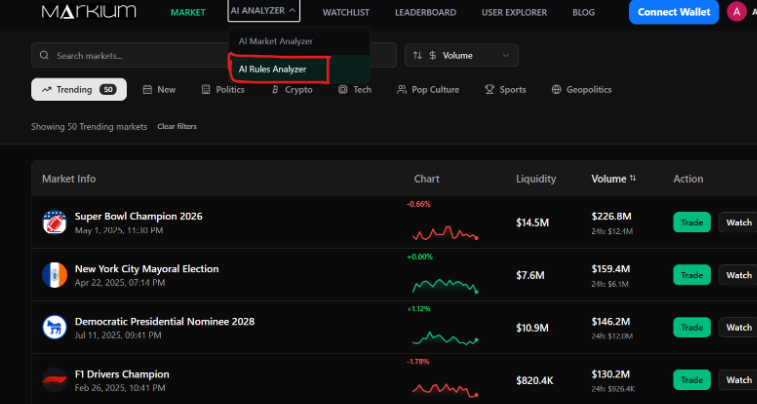 Successful trading isn't just about predicting the event, rather it's about clearly understanding the rules of the game. By using a tool like the Markium AI Rules Analyzer, you shift the focus into making strategic decisions. It’s the simplest way to ensure that your trades are based on insight, not oversight.